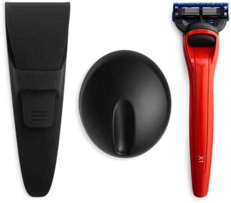 Bolin Webb Razor, Stand, and Waterproof Travel Case in Red. Fitted with Gillette Fusion5 Blade Cartridge Technology for The Closest Shave. Luxury Razors for Men - Giftable X1 Style.