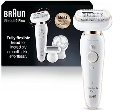 Braun Epilator Silk-épil 9 9-030 with Flexible Head, Facial Hair Removal for Women and Men, Hair Removal Device, Shaver & Trimmer, Cordless, Rechargeable, Wet & Dry, Beauty Kit with Body Massage Pad