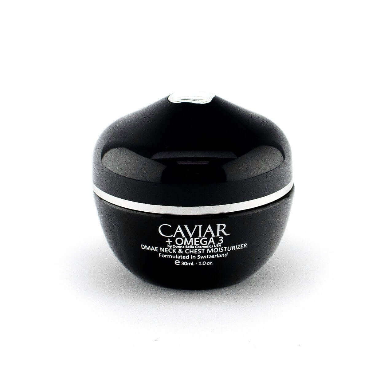 Donna Bella’s Caviar + Omega 3 DMAE Neck & Chest Moisturizer is a lightweight lifting & firming cream specifically formulated for the often-neglected neck and chest area. The neck and upper chest are often exposed to the same harmful rays and environmental factors as the face, with far less care and maintenance. These areas suffer similar signs of damage and aging and require the same level of attention! Caviar + Omega 3 DMAE Neck & Chest Moisturizer softens the appearance of lines, sun-spots, scarring, and discoloration. Continued use tightens and firms skin and improves elasticity.