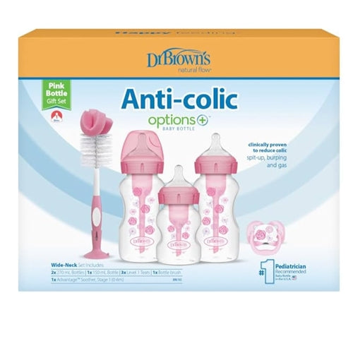 Dr Brown's Wide Neck Anti-Colic Options+ Bottles Pink Gift Set