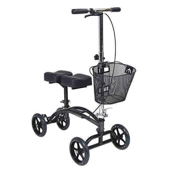 - Knee walker can be steered for increased maneuverability. Durable, steel frame with silver vein finish; Comes with a removable front basket
