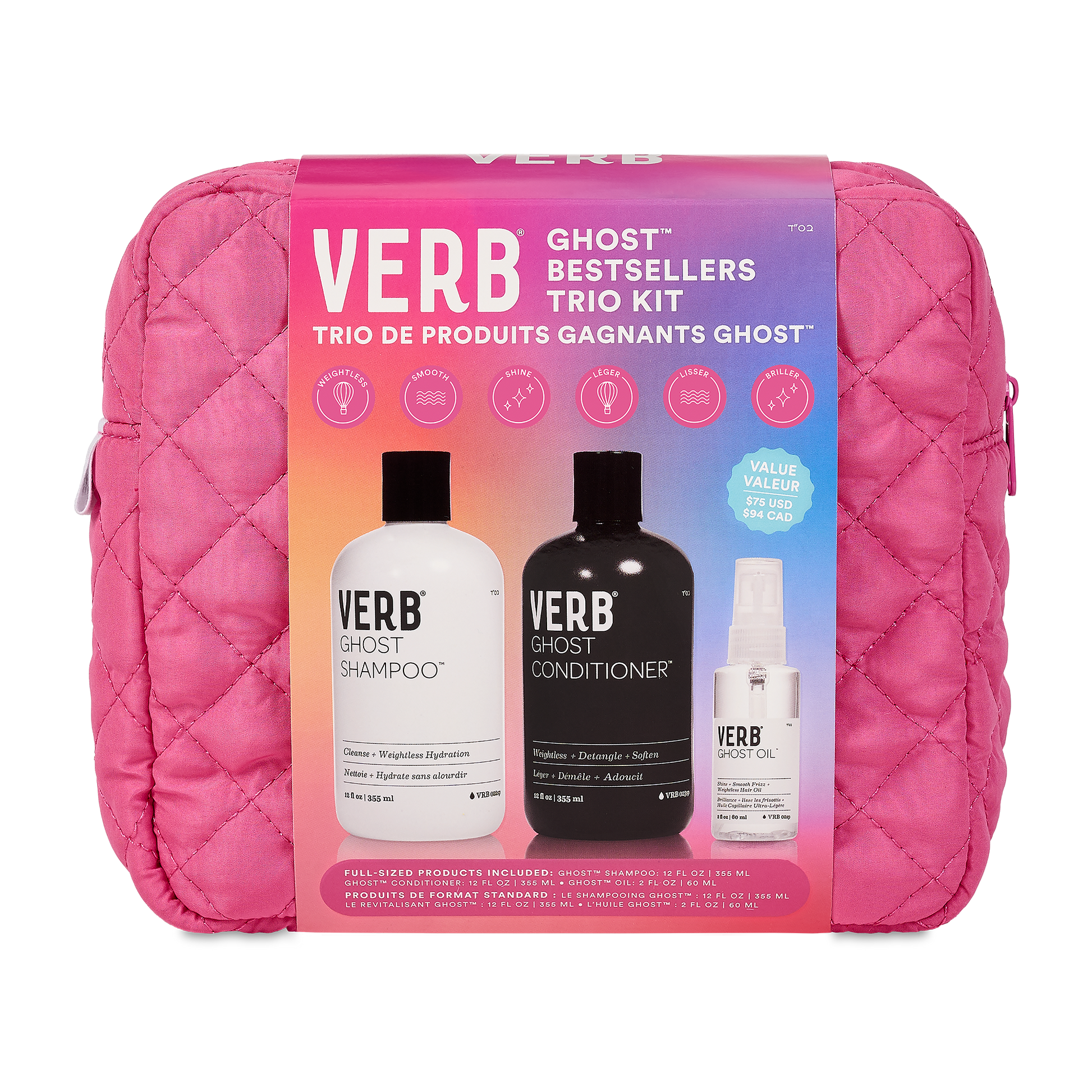 a superstar lineup of our ghost™ products to fight frizz and add shine while you cleanse, condition and style. this 3-piece kit is powered by moringa oil to moisturize, detangle and minimize frizz for hair that’s shiny and smooth. ($75 value)