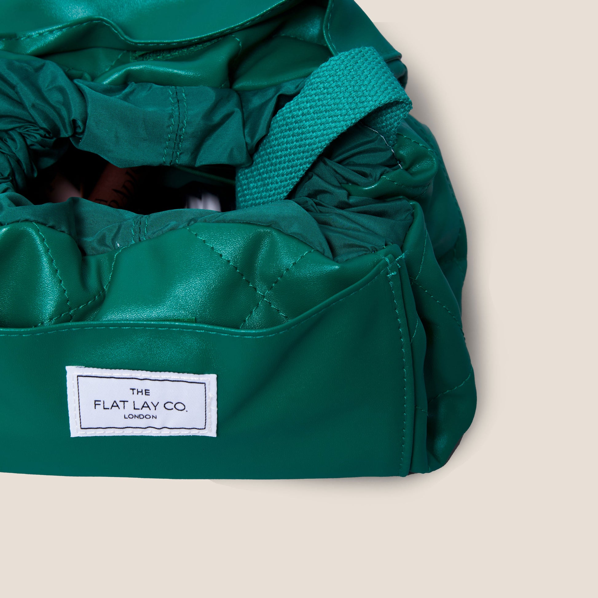 Monochrome Green Leather Full Size Flat Lay Makeup Bag