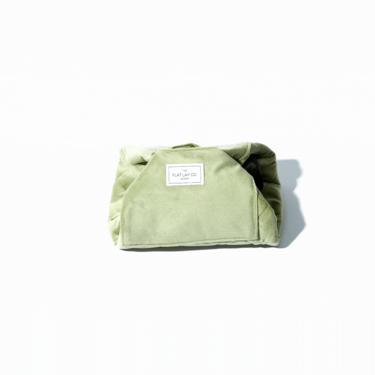 Sage Green Velvet Full Size Flat Lay Makeup Bag