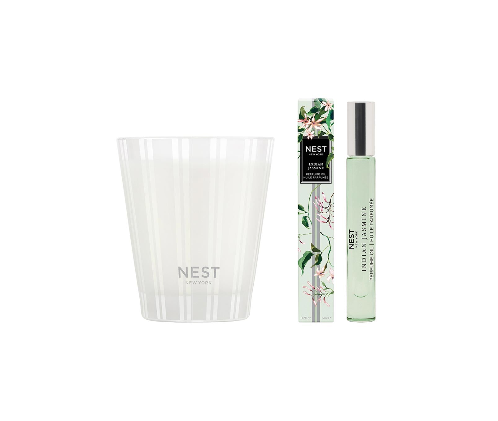Immerse yourself in the lush jasmine fields of India with this Classic Candle and Perfume Oil Rollerball featuring an intense Jasmine absolute surrounded by bright red berries, sparkling bergamot, and spicy pink pepper.