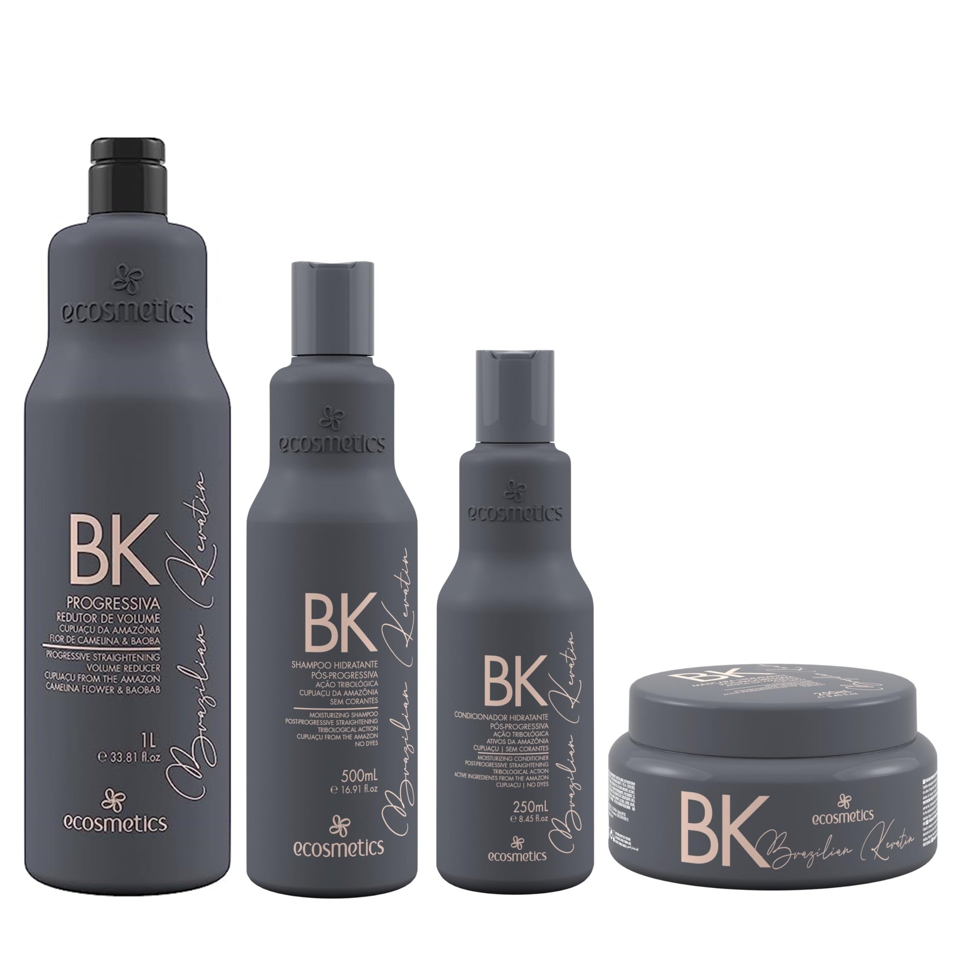 Kit Brazilian Keratin Treatment Ecosmetics BK | Progressive Brush | Straightening & Smoothing System | Volume Reducer. 1000ml/500ml/250ml/250ml